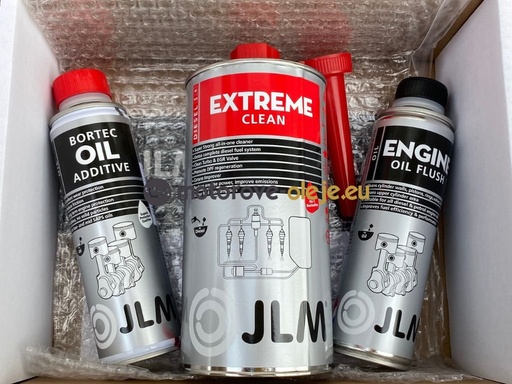 3. Po vyjazdení celej nádrže s aditívom Extreme Clean vymeňte motorový olej s preplachom JLM Engine Oil Flush. Zahrejte motor na prevádzkovú teplotu (teplota oleja 90C) Vypnite motor a pridajte JLM Engine Oil Flush do motorového oleja pred výmenou oleja. Naštartujte a nechajte motor bežať na voľnobehu 15 minút. Ak je motor veľmi zanesený, alebo sú pripečené piestne krúžky, bude potrebné nechať motor bežať 20 - 25 min. Potom vymeňte olej a olejový filter ako obvykle. Objem 250 ml preplachu Engine Flush je určený na 3 až 5L oleja. Ak je olejová náplň väčšia ako 5,5 litra, použite 2 balenie Engine Flush.