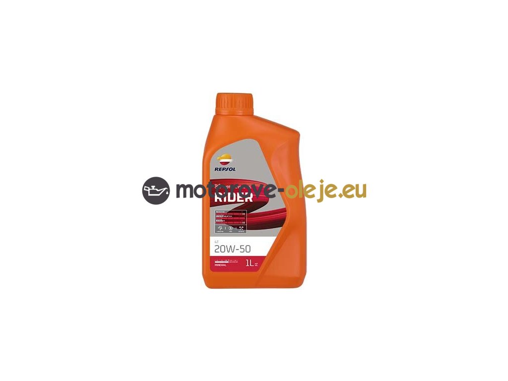 REPSOL RIDER 4T 20W-50 1L - Minerálny motorový olej pre 4-taktné motory motocyklov určený pre bežné použitie. Poskytuje optimálnu ochranu a čistenie motora a tiež vysokú odolnosť proti prerušeniu olejového filmu. Olej ponúka skvelé vlastnosti vo všetkých prevádzkových podmienkach. Je vhodný pre cestovanie a jazdu na dlhšie vzdialenosti.